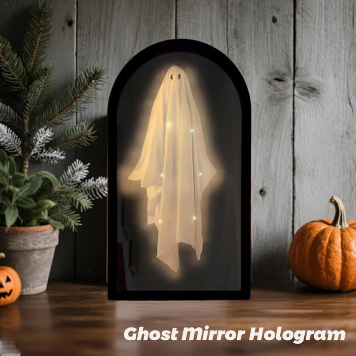 - Haunting: Upon opening, the mirror sparkles to life, revealing a classic sheet ghost inside, making it a conversation for Halloween or themed events.
